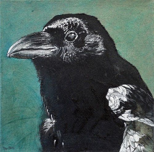 Raven, 30x30cm, Mischtechnik auf Leinen