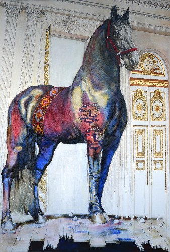 Das Ende der Universalität ist der Beginn des Ego , 200 x 140 cm, Öl, Acryl und Schlagmetall auf Leinwand